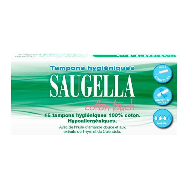 Avez-vous déjà ressenti que vos protections périodiques limitaient vos activités, en particulier lors de vos déplacements ou de vos séances de sport ? Découvrez les tampons hygiéniques Saugella Cotton Touch, vos alliés polyvalents pour des journées actives et bien plus encore. Composés à 100 % de coton, ces tampons doux et hypoallergéniques sont dotés d'un cordon hydrophobe pour une sécurité renforcée.Sans applicateur, ces tampons offrent une utilisation simple et pratique. Leur grande capacité d'absorption est assurée par une quantité accrue de coton, les rendant parfaits pour la natation, les entraînements, et toutes autres activités. Ils s’élargissent de manière radiale (en largeur plutôt qu'en longueur) lors de leur utilisation, évitant ainsi la sensation de "corps étranger" pour un confort optimal. Enrichis en solution Saugella, ils contiennent des extraits de thym et de calendula pour leurs propriétés anti-odeurs et de l'huile d'amande douce pour un confort supplémentaire.