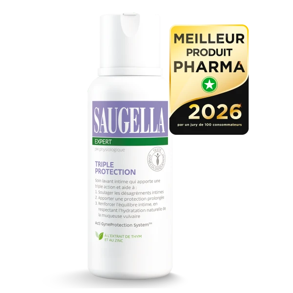 Notre Saugella Triple Protection Soin Lavant Intime est composé du système Acti GyneProtection. Avec des ingrédients naturels tels que l'extrait de thym associé au zinc pour une action protectrice synergique mais aussi grâce à l'acide lactique, il combat ces inconforts gênants tout en maintenant votre équilibre intime. Ce soin lavant intime offre une protection prolongée pour la zone vulvaire et s’assure qu'elle reste naturellement hydratée pendant votre journée chargée.